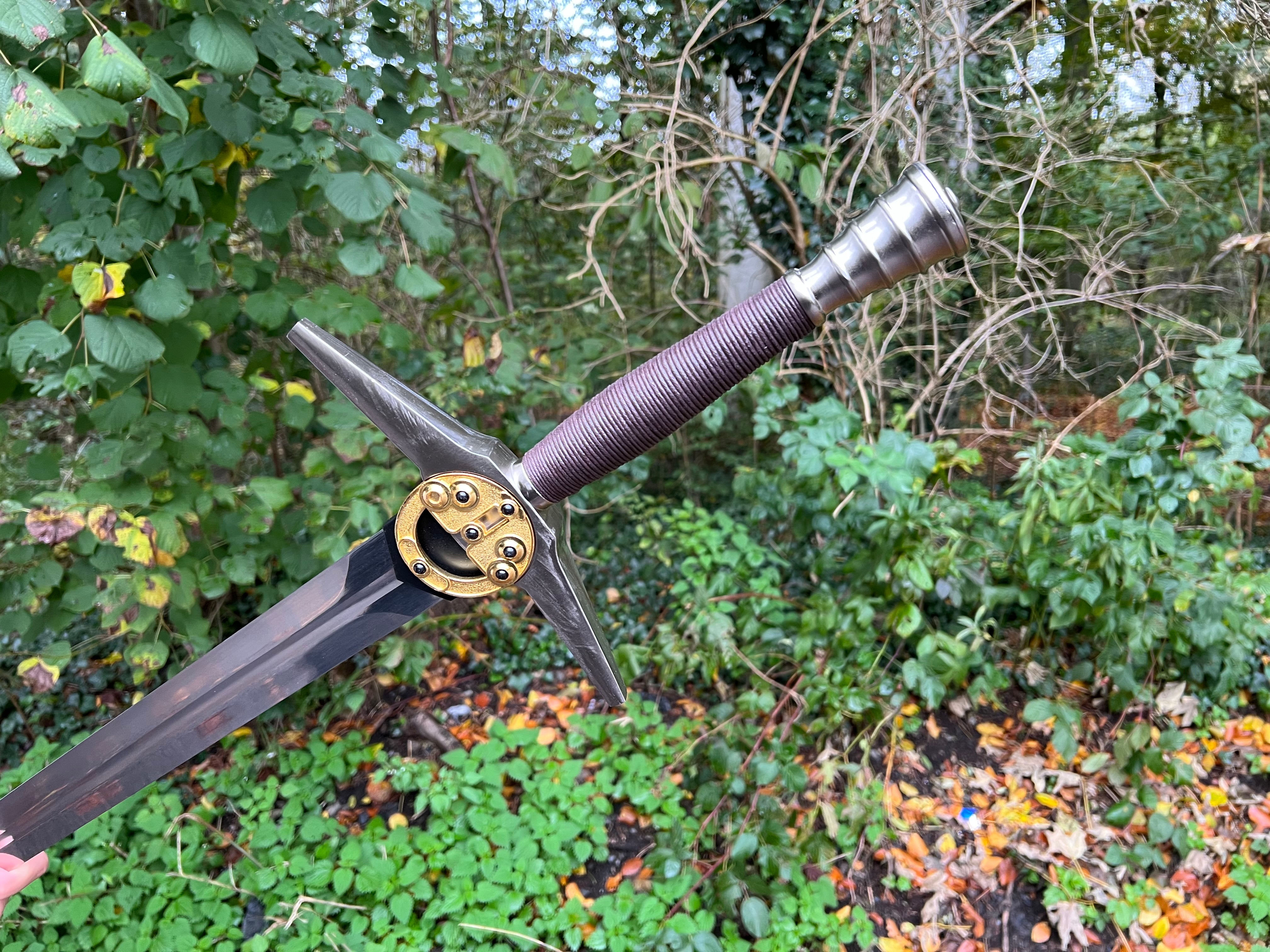 Das Schwert des Hexers Geralt von Riva aus dem Spiel und die Netflix Serie. Der Hexer reist durch die Welt um Abenteuer zu erleben und Monster zu erlegen. Seine Geschichte ist geprägt von Magie, Blut und Tod. Gerald ist ein Großer stämmiger Mann mit weißem Haar, was eine Art Wiedererkennungsmerkmal für ihn Darstellt. The Witcher aus Netflix basiert auf das Gleichnamige Story Spiel. Geralt nutzt dieses Schwert als Zweihand Schwert um verschiedene Monster zu Töten. Außerdem verfügt Geralt über Magie, was ihn in Kombination mit seinen Schwert Skills sehr stark macht.